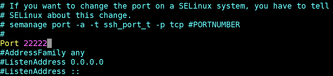파일에서 Port라고 명시되어 있는 곳을 원하는 포트 번호로 변경시켜줍니다. 저는 22222번으로 변경시켜주었습니다.