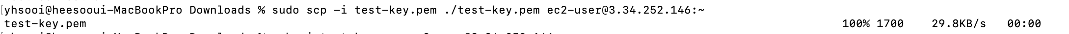 scp -i <보낼 서버 인증 키> -P <포트 번호> <보내고 싶은 파일> ec2-user@<ec2 instance ip>:~