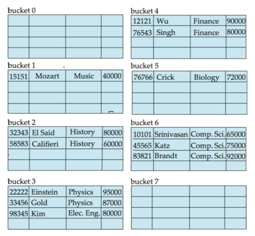 크게 Static Hashing과 Dynamic hashing이 있습니다. 자세하게 다루지는 않고 간단하게 말해보겠습니다. Static hashing은 bucket의 숫자가 고정되어 있는 방법입니다. 이 방법으로 충분히 데이터를 저장할 수 있지만 bucket의 용량이 없거나 record(data)가 한 bucket에만 쏠려서 bucket overflow가 일어날 때 bucket의 수를 늘려주어야 합니다. 해결할 수 있는 방법이 2가지가 있는데 한 가지 방법은 Rehashing을 하는 방법이고 두 번째 방법은 bucket의 수를 동적으로 변경시키는 방법입니다. 여기서 동적으로 변경시키는 방법을 영어로 dynamic hashing이라고 부릅니다. dynamic hashing의 종류와 자세한 설명은 구글에 검색하면 자세하게 설명해 주는 블로그들이 많습니다.