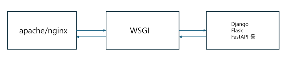 Web Server Gateway Interface 약자로, 말 그대로 Web Server와 Python 웹 어플리케이션의 통신을 위한 표준 인터페이스입니다. 다양한 웹 서버와 Pytohn 웹 어플리케이션을 통신해 주기 위해 나오게 되었습니다.