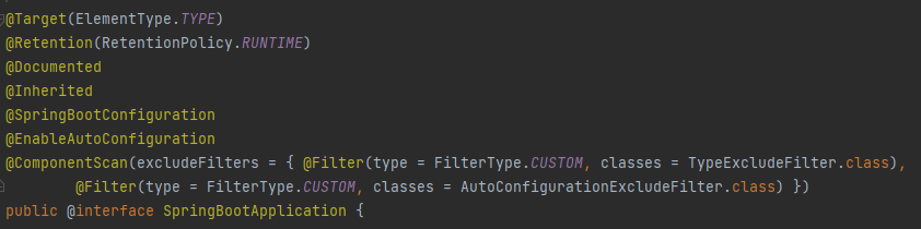 위 코드에 있는 @SpringBootApplication 어노테이션을 들어가서 보면 @ComponentScan 어노테이션이 있는 것을 볼 수 있습니다.