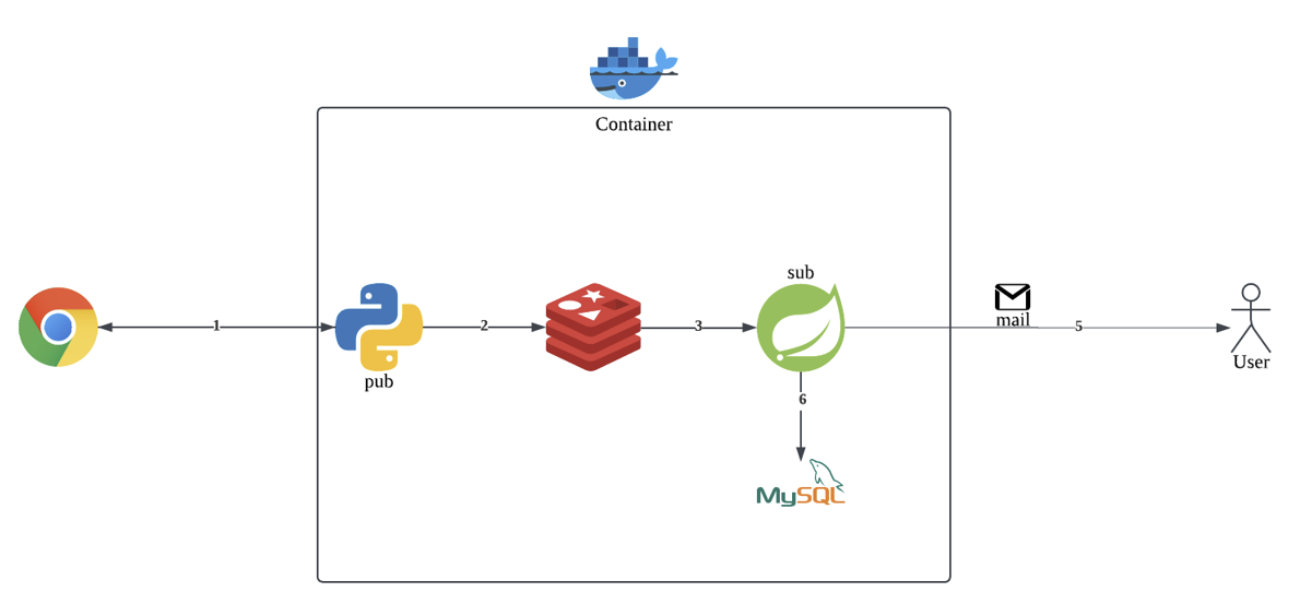 각 단계를 자세히 설명해보겠다. 첫 번째로 Python에서 웹 크롤링(cron 매일 오전 9시, 오후 4시)을 진행한다. 웹 크롤링 진행 후, 데이터만 가공해서 Redis로 데이터를 보낸다. Redis에서 해당 데이터를 받고 Spring boot로 데이터를 보낸다. 데이터를 받은 Spring 서비스에서는 DB에 존재하는 데이터인지 확인을 하고, 새로운 데이터들만 사용자에게 이메일로 전송한다. 전송이 성공적으로 되었으면, 데이터를 DB에 저장을한다.