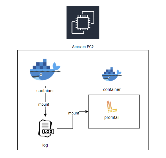 EC2 서버는 총 2개가 존재한다. 왼쪽 EC2 서버에는 실제 application이 존재하고, 어플리케이션의 container 로그와 file 로그를 수집하기 위해 promtail이 있다. 다른 EC2 서버에는 Loki, grafana가 존재한다. promtail에서 로그를 수집하고, loki로 전송하면, grafana로 로그를 대시보드 형태로 시각화해서 볼 수 있고, grafana의 alert rule에 기반해서 에러 발생 시 알림을 전송할 수 있다.
